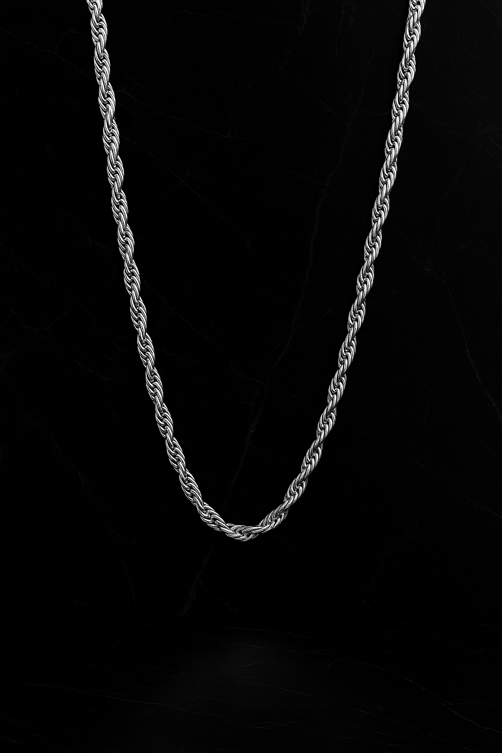 "Rope" Zilverkleurige Ketting & Armband (5mm)